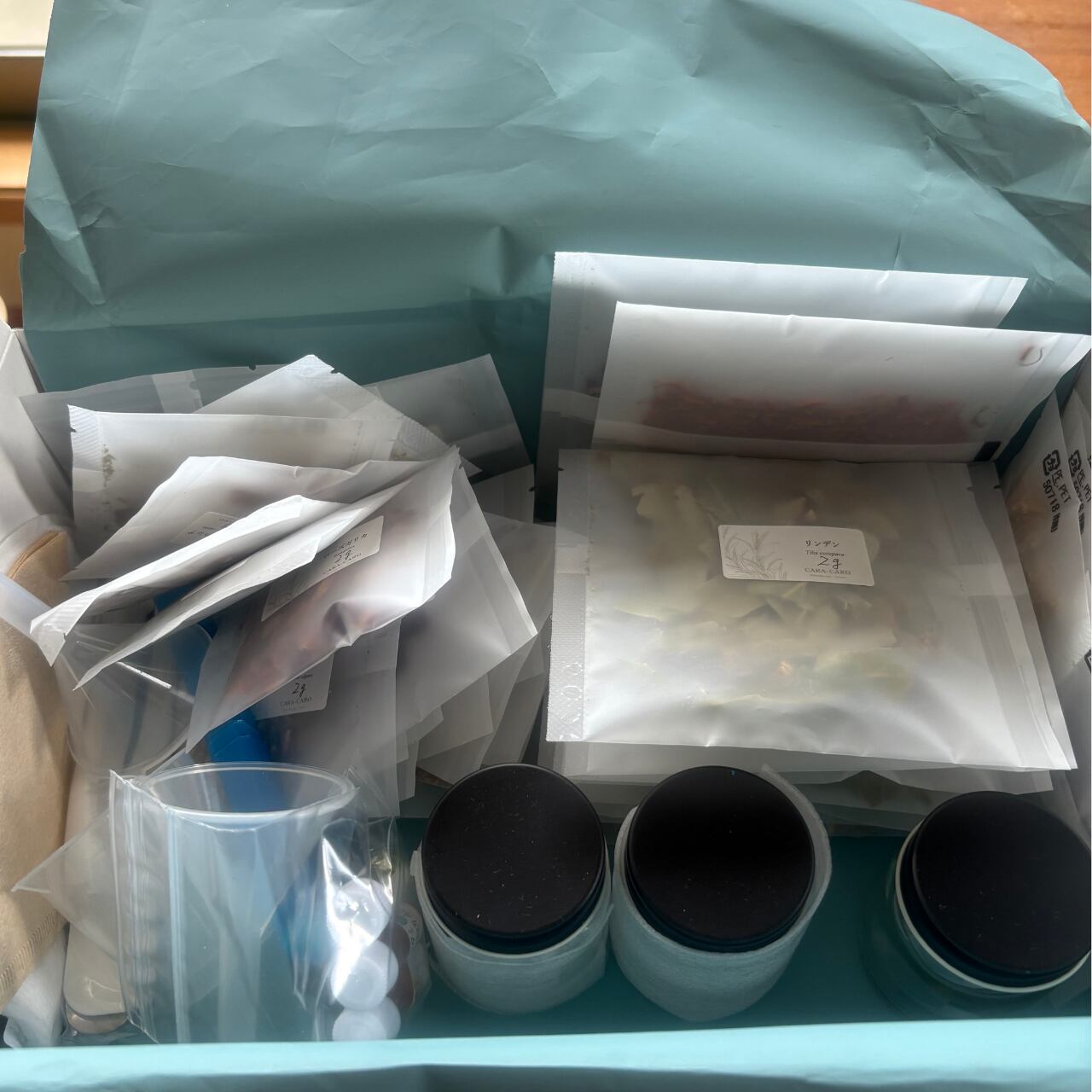 ・オールカラーのテキストと実習で使うハーブや道具がセットになっています。